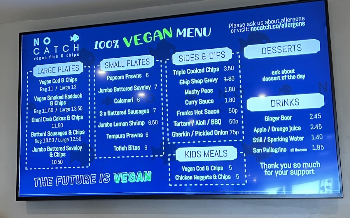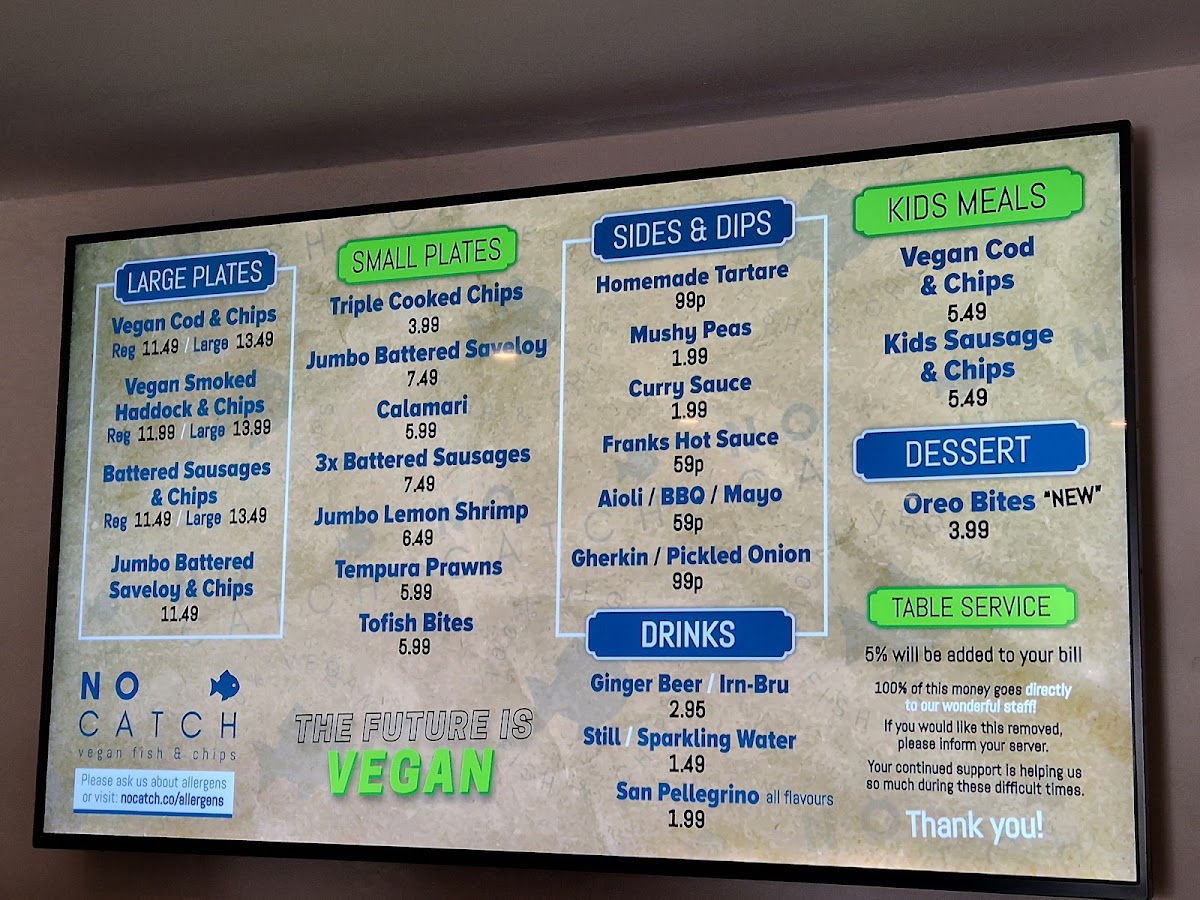 Introducing No Catch, a pioneering vegan fish and chip shop located at 127a Kings Rd, Brighton and Hove. This gem is redefining the traditional chippy experience without compromising on taste or ethics. Their menu boasts an impressive selection, highlighted by the renowned Smoked Tofish and Kids Vegan Cod & Chips, ensuring delightful options for all ages.